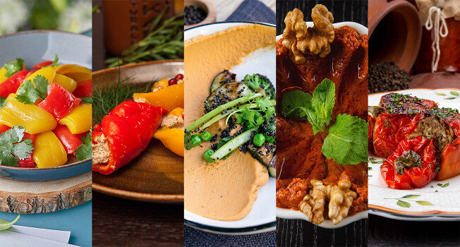 - Запеченный болгарский перец с орехами и гранатом: Запекание перца в сочетании с ореховой пастой создает сытную закуску, подходящую даже для легкого обеда. Этот рецепт также представлен в «Оджахури».