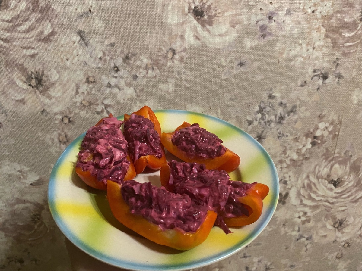 Оригинальное и сытное блюдо — лодочки из болгарского перца, фаршированные аппетитной начинкой из свеклы и куриных яиц, пишет Рецепты от 7dach.