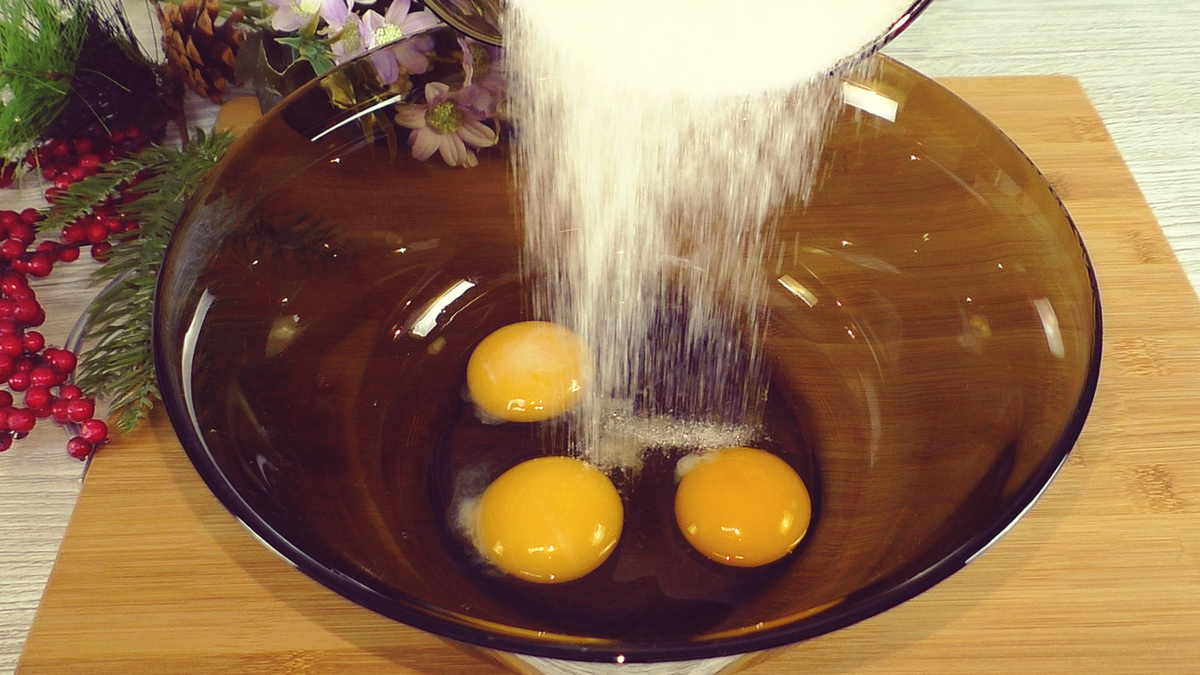 В глубокой миске соединить яйца, соль и сахар, а затем тщательно перемешать, лучше всего с помощью миксера. Если ягоды кислые, сахар можно оставить в полном объеме; в случае сладких ягод — уменьшить его количество.