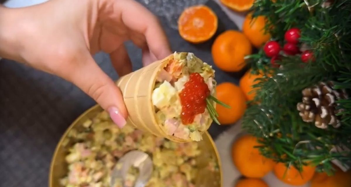 Новогодний стол уже не является лишь мерилом кулинарного мастерства — в этом году в моде креативный подход к привычным блюдам. Вместо того, чтобы продолжать соревнование в сложности приготовления, кулинары добавляют элемент неожиданности. Вместе с ранее популярными арт-объектами, такими как рубиновое "битое стекло", на поверхность выходит новый тренд — хрустящие вафельные стаканчики.