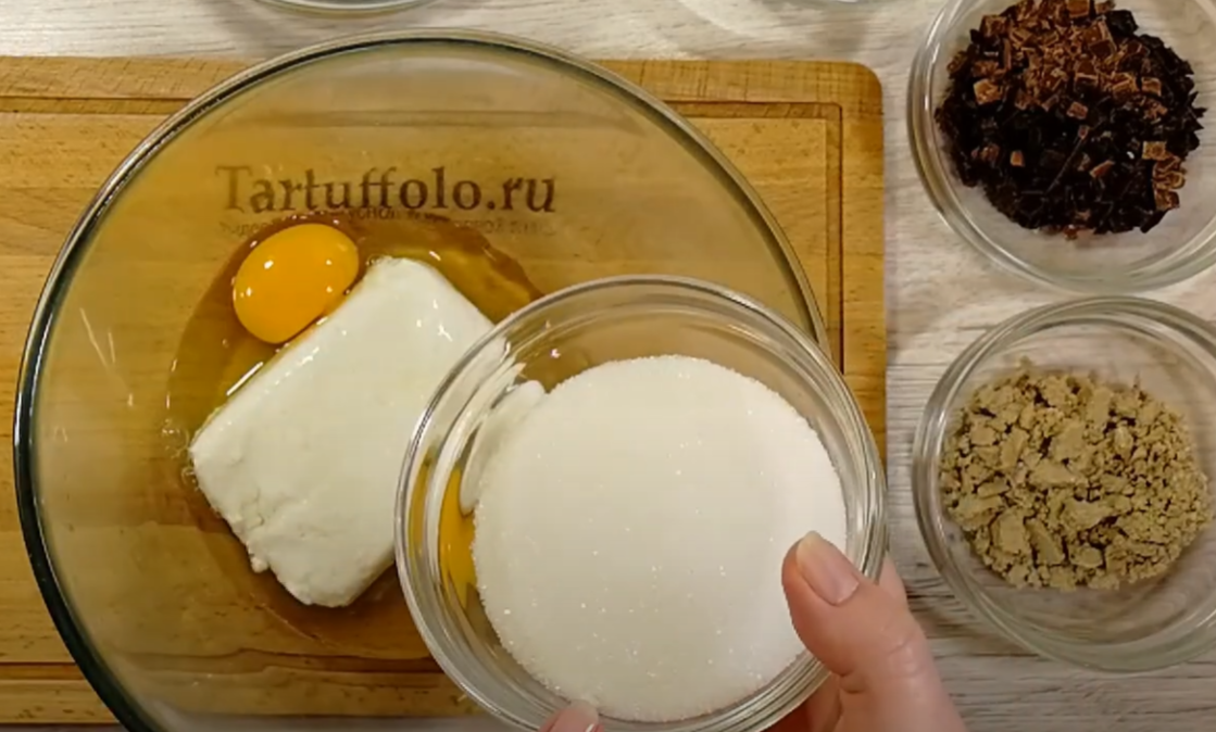 Начинать стоит с предварительного разогрева духовки до 180 градусов. Для основного теста подойдет 180 граммов свежего творога, к которому добавляют два яйца и 120 граммов сахара. Если начинка не слишком сладкая, можно немного увеличить количество сахара. Для аромата добавьте щепотку ванилина и тщательно взбейте массу с помощью венчика или миксера до полной однородности.