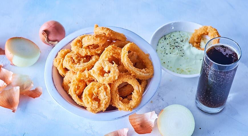 Луковые кольца, нежные и хрустящие, становятся настоящей звездой закусок, способными потягаться с кальмарами в кляре. Этого блюда легко добиться, добавив уникальный штрих, как, например, васаби-майонез. Это отличное решение как для вечеринки, так и для домашних посиделок.