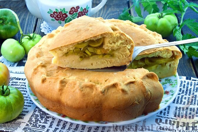Не забыли и о выпечке! Пирог на кефире с начинкой из зеленых помидоров удивит нежностью теста и приятной кислинкой начинки. Основные компоненты: