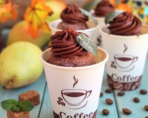 6. Выпекайте в заранее разогретой до 180 градусов духовке в течение 30-35 минут. По желанию, готовые кексы можно украсить сверху.