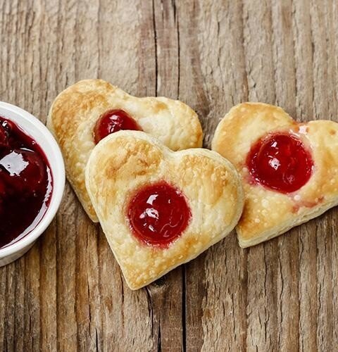 В центре каждогоHeart-shaped печенья сделайте небольшое углубление и добавьте немного вишнёвого варенья.