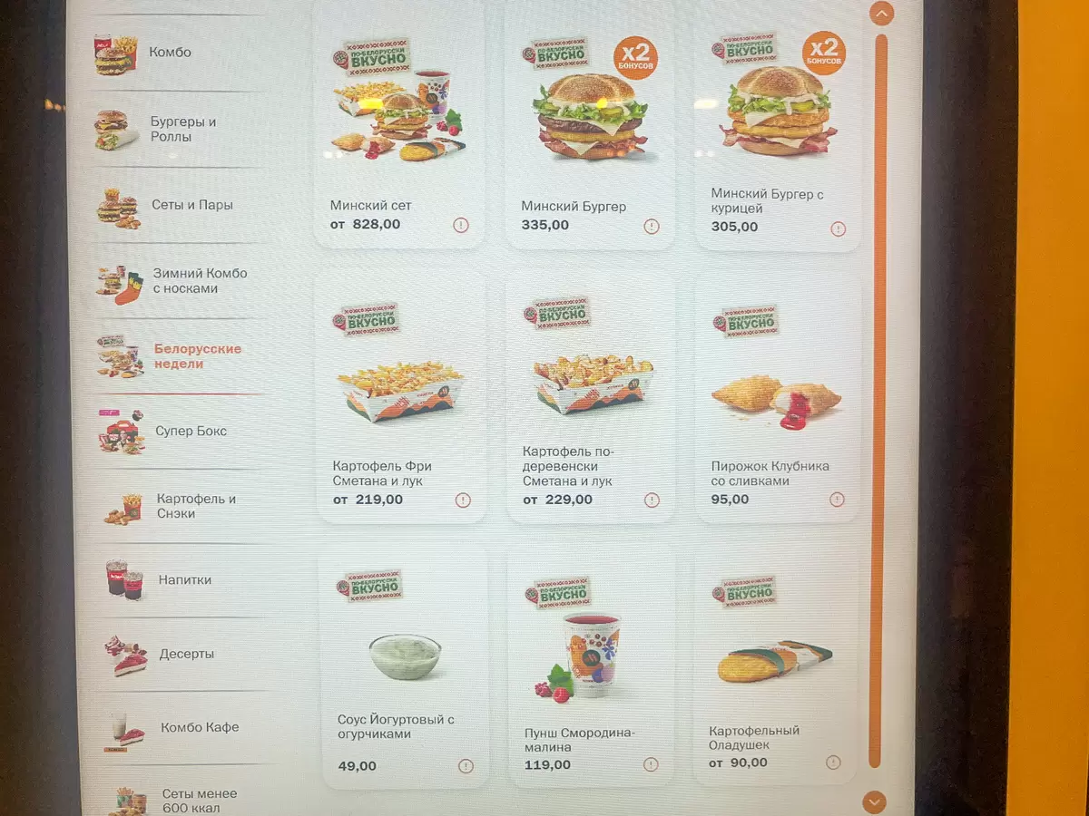 Среди блюд, которые обратили на себя внимание, остались драники. В белорусском аналогичном ресторанном сервисе (Мак.By) они доступны и явно отсутствуют в новом меню "Вкусно – и точка". Это вызывает недоумение, так как драники считаются одним из самых известных белорусских блюд. Минский бургер, хоть и звучит эффектно, не может быть полной заменой традиционному лакомству.