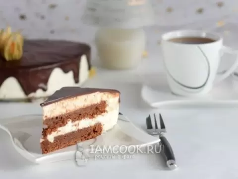 Утром освободите торт от формы и полейте его глазурью, для которой нужно разогреть сливки, добавить шоколад и тщательно размешать. Декорировать торт можно физалисом. Наслаждайтесь выпечкой, которая обязательно станет украшением любого стола!