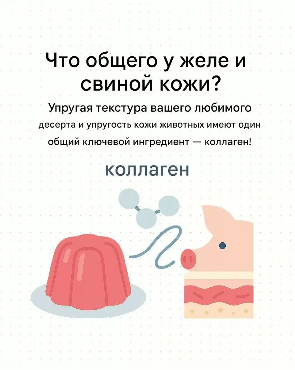 И желе, и свиная кожа имеют один важный общий компонент - коллаген. Этот белок, который дает упругость и эластичность коже, оказывается ключевым элементом в создании этих двух весьма разных, но на самом деле схожих продуктов. В процессе приготовления желе коллаген, извлеченный из костей или кожи, превращается в желеобразную массу, которая так приятно тает во рту.