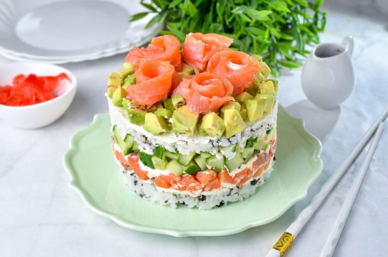 Таким образом, салат «Филадельфия» становится не только легким и вкусным блюдом, но и настоящим украшением вашего стола, ведь его красота не оставит никого равнодушным.