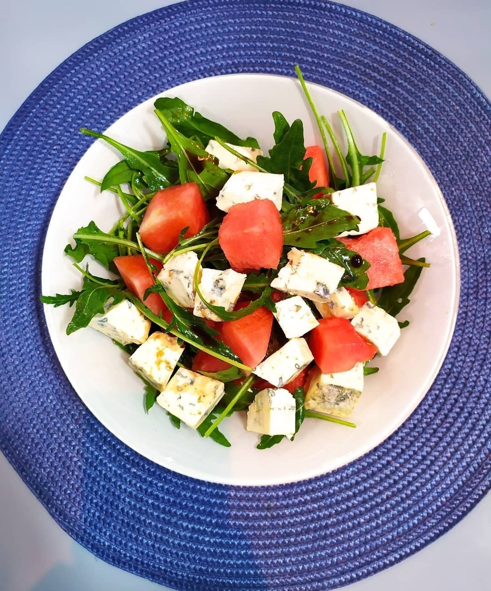 Салат из руколы с арбузом и сыром