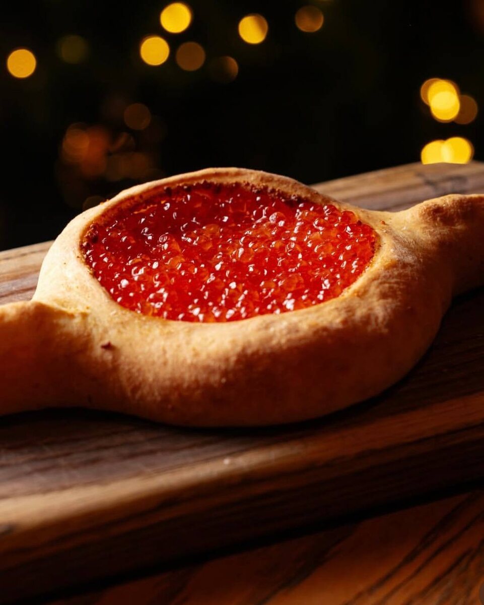 На празднование Нового года многие стремятся удивить гостей оригинальными блюдами. Одним из таких кулинарных шедевров становится хачапури по-аджарски, которое в этом сезоне представлено в уникальном исполнении с красной икрой.