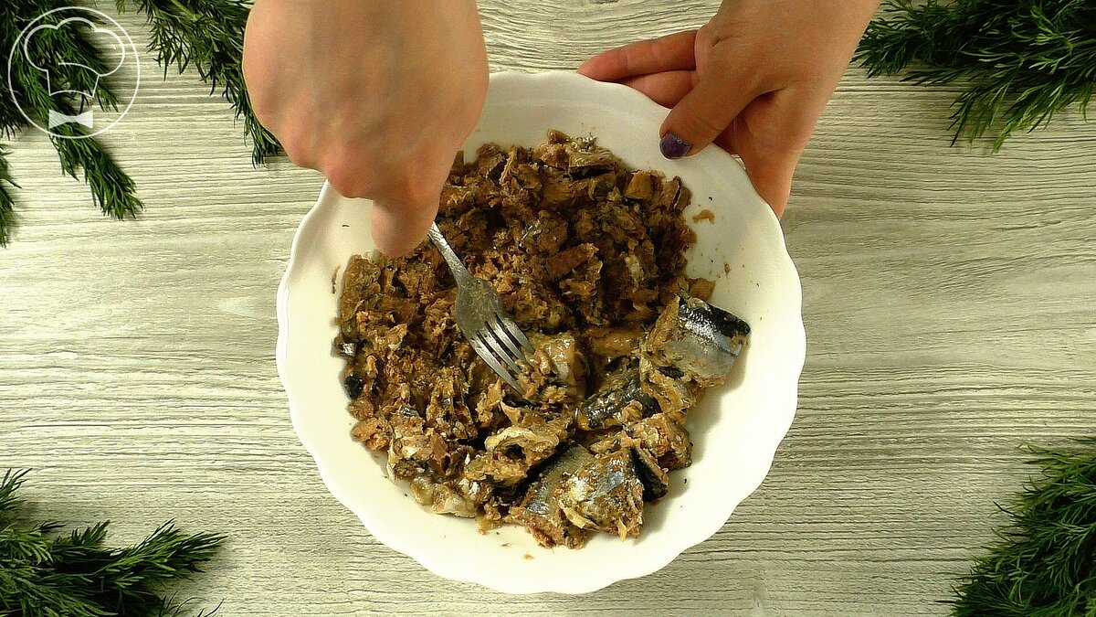 1. Разомните рыбу вилкой. Это основа вашего салата.