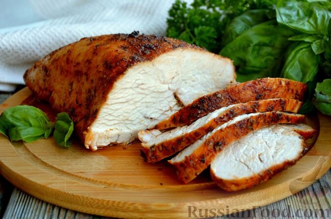 Филе индейки в пряном маринаде станет настоящим кулинарным шедевром. Это блюдо запекается всего 20 минут, а благодаря предварительному маринованию с пряностями и соевым соусом, мясо получается невероятно сочным и мягким. Прослойка из зелени и лимонного сока добавит освежающий вкус.