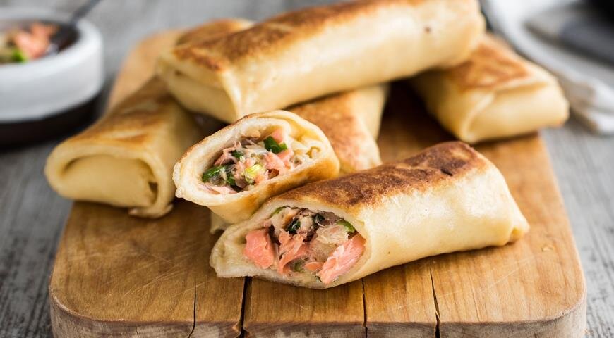 Фарширование и жарка блинчиков