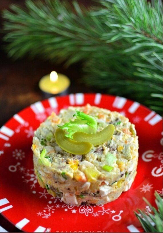 Такой салат идеально подходит для праздничного стола и станет вкусным дополнением к любому меню. Наслаждайтесь кулинарным шедевром!