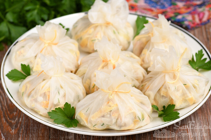 Яичные блинчики — это ещё один интересный способ подачи. После приготовления блинчиков, их можно смазывать майонезом и заворачивать в рулеты вместе с вашим любимым салатом. Края блинчиков могут быть укорочены для аккуратности, после чего рулеты нарезаются и выставляются на стол, создавая аппетитный вид.