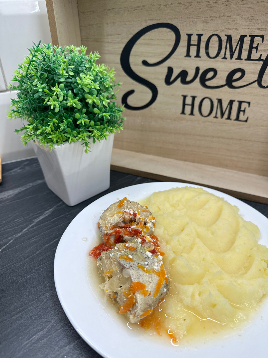 Сначала обжаривают лук с морковью, затем добавляют помидор, чтобы овощи стали мягкими и сочными. Крупные куски минтая опускаются в теплую основу и медленно тушатся под крышкой. Через несколько минут аромат наполняет кухню и подсказывает, что главное блюдо готово.