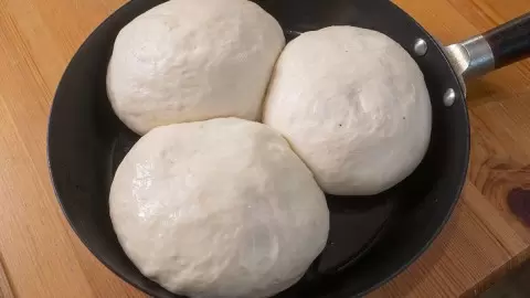 В тестомес помещаем муку, сахар, воду, дрожжи и растительное масло, все тщательно перемешиваем до получения однородной массы. Затем добавляем соль и продолжаем вымешивать еще 3-4 минуты. Затем превращаем тесто в шар и делим его на 6 равных частей. Шарики кладем в смазанную растительным маслом емкость, накрываем полотенцем и оставляем на 40 минут для подъема.