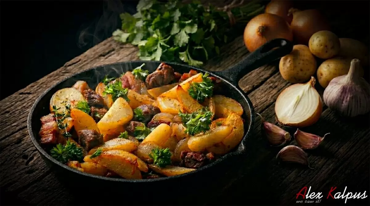 Свинина играет важную роль в гастрономии восточной Грузии, в то время как в западной чаще предпочитают птицу или говядину. Сочные куски свинины идеально подходят для обжарки, придавая картофелю неизменно аппетитный вкус. Картофель, хоть и появился в грузинской кухне сравнительно недавно, стал неотъемлемой частью каждого стола, впитывая ароматы и соки, чтобы составить гармоничное целое с мясом.