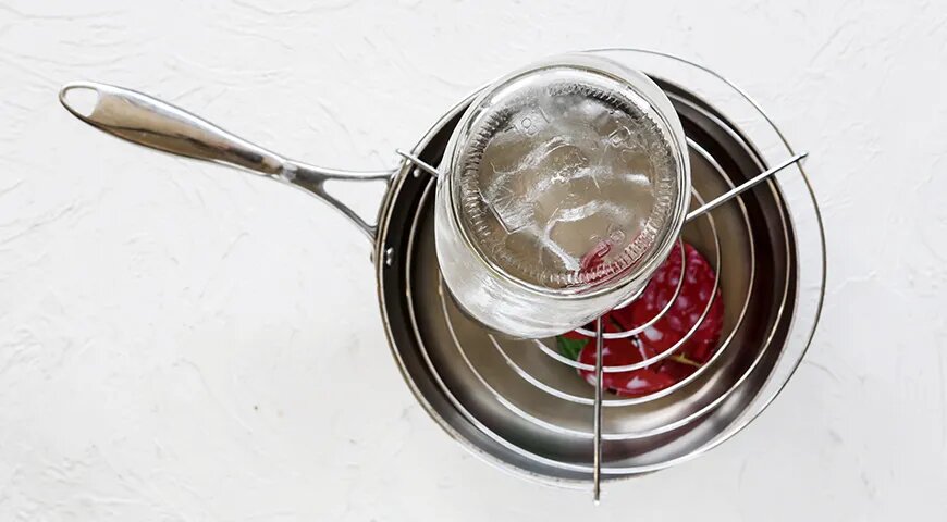 Далее необходимо вскипятить 1.5 литра воды и залить ей арбузные ломтики, оставляя немного свободного пространства. Закройте банки крышками и оставьте на полчаса. За это время арбуз немного осядет, и вам нужно будет слить образовавшуюся воду через марлю в кастрюлю.