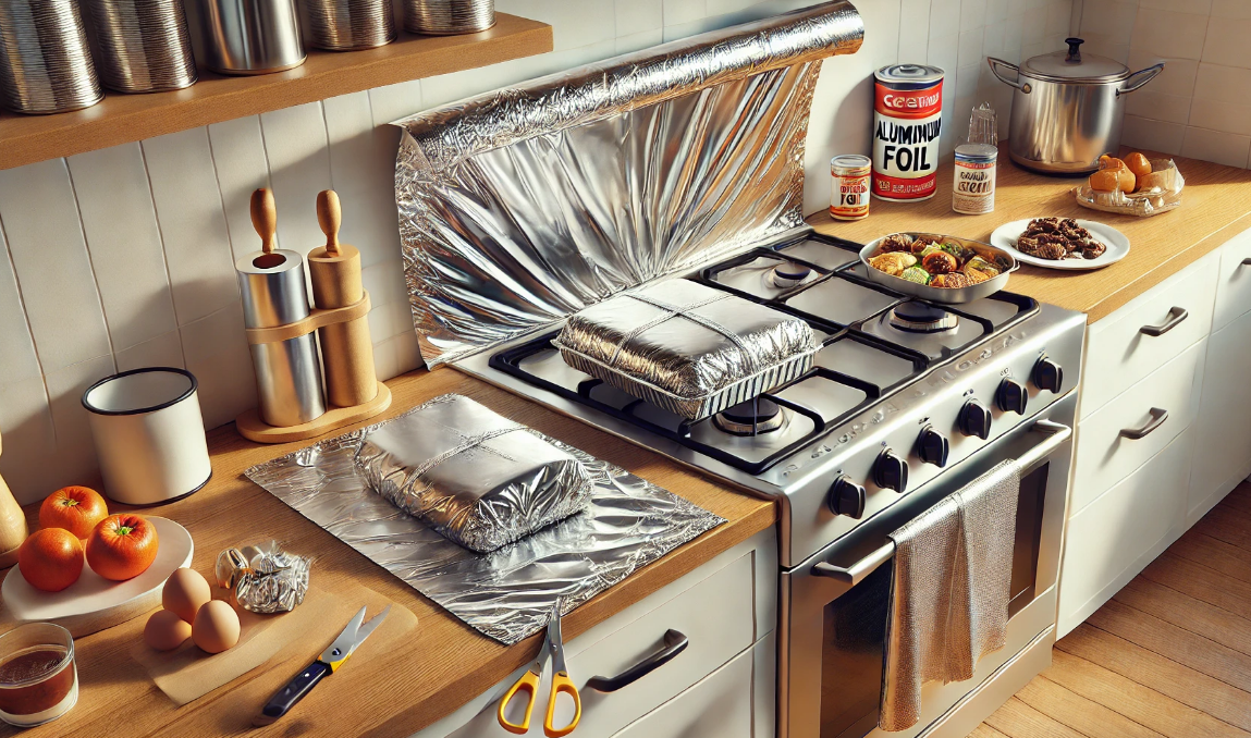 - Защита плит: Чтобы избежать жирных пятен на кухне, можно использовать фольгу как временную защиту. Просто застелите плиту листами фольги, и уборка станет значительно проще.