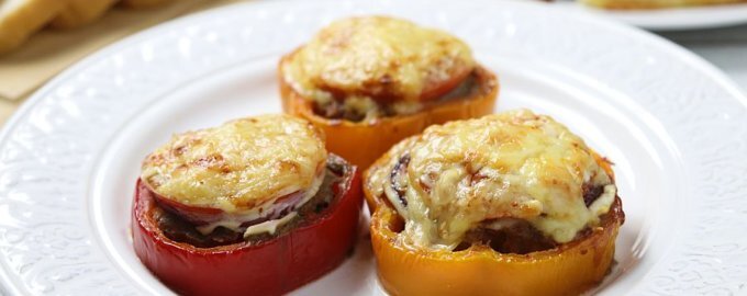 Фарш аккуратно заполняется в перцевые кольца, создавая небольшие углубления. Для соуса смешивают йогурт с кетчупом, лук тонко нарезают и обжаривают на сковороде. Помидоры и сыр стоит нарезать тонкими кружками. Каждый готовый фаршированный перец сначала покрывают соусом, затем добавляют хрустящий лук и помидоры. Все это запекается в духовке при температуре 180-190°C в течение 15-20 минут, пока не появится аппетитная корочка.